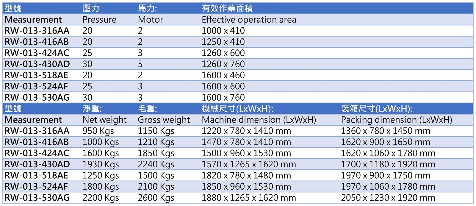 ● Special machine sizes can be customized.