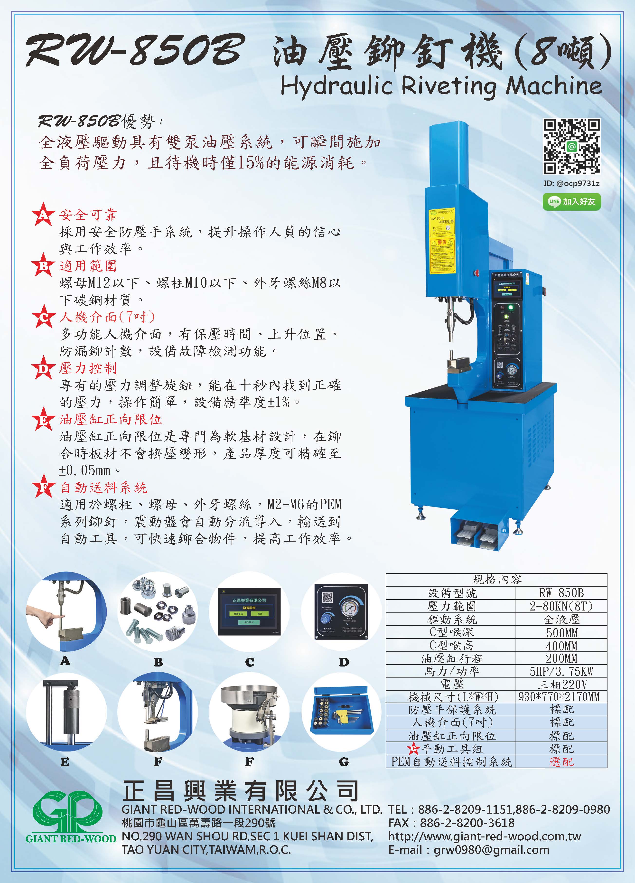 RW-850B hydraulic rivet machine is accepted for OEM commissioned manufacturing
